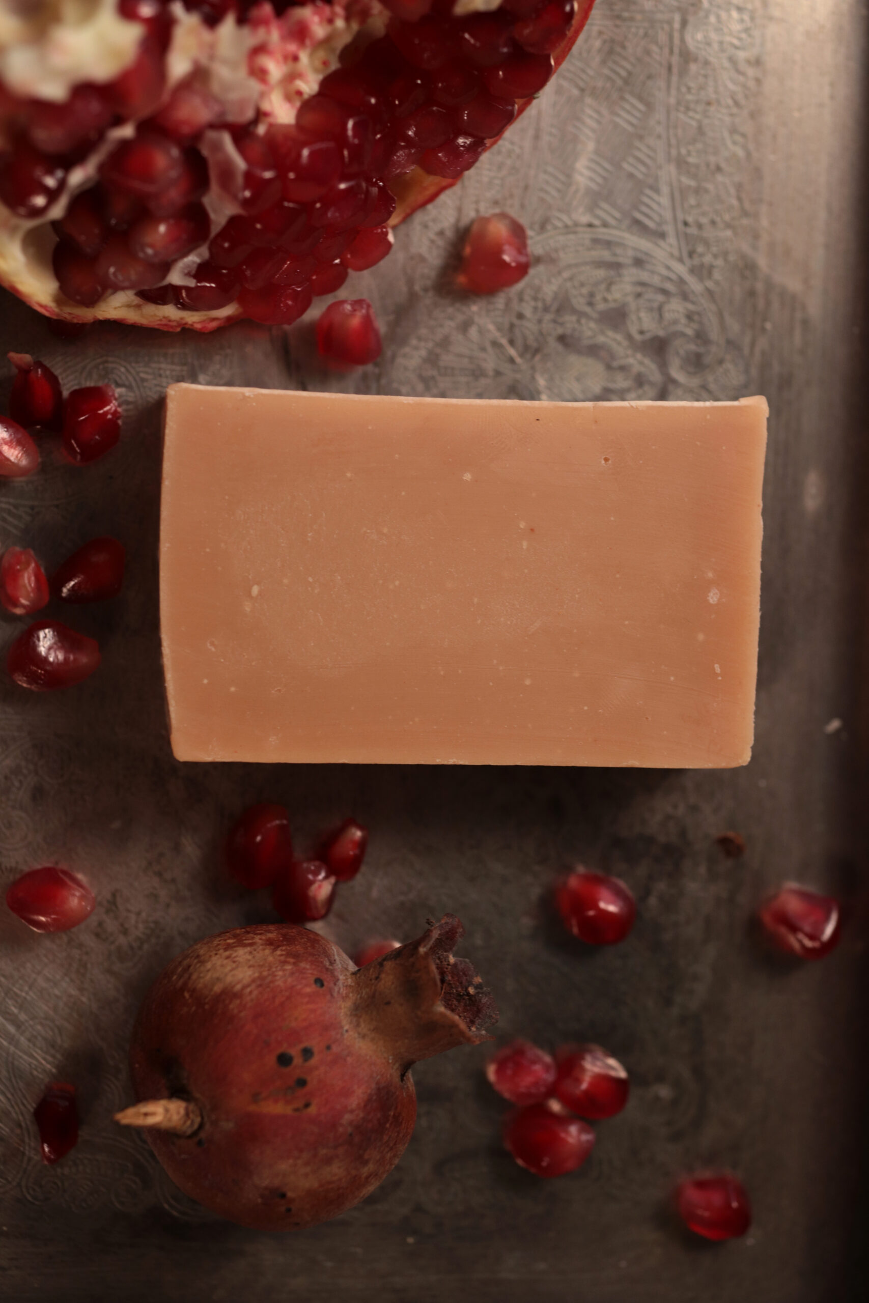 Luxurious facial soap with pomegranate juice, pink french clay, and a divine scent from essential oils. Firms, moisturizes, cleanses and leaves skin radiant and soft.